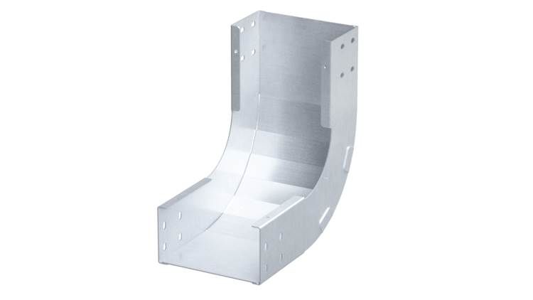 Вертикальный угол 90 градусов обеспечивает поворот трассы в вертикальной плоскости под прямым углом. Плавность поворота облегчает прокладку силового кабеля. Направление -внутренний. Ширина -500 мм, высота -100 мм. Исполнение - "Горячий цинк"