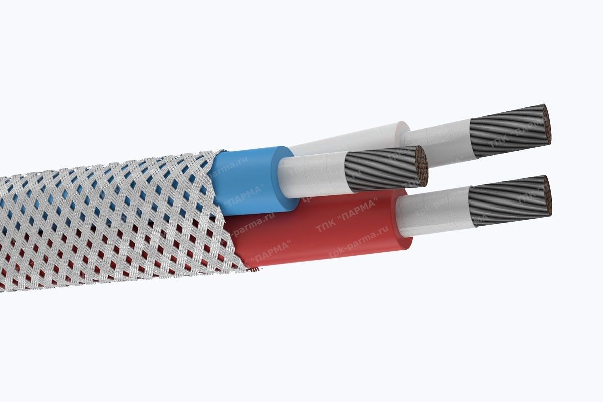 1. Три многопроволочные медные лужёные токопроводящие жилы с площадью номинального поперечного сечения 0,35 мм2, соответствующие 5 классу по ГОСТ 22483-2012.
